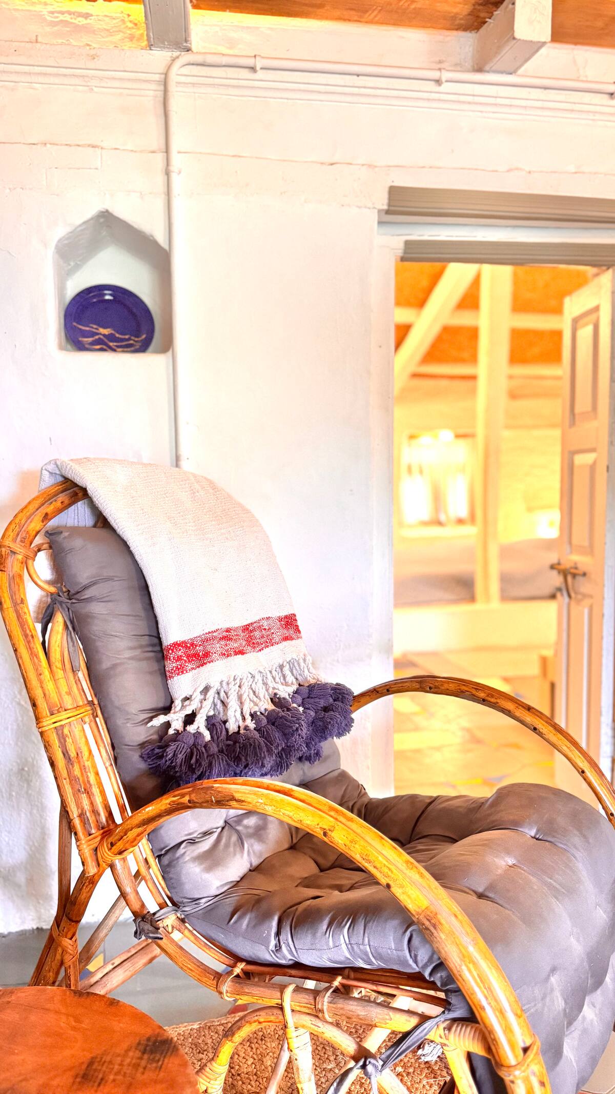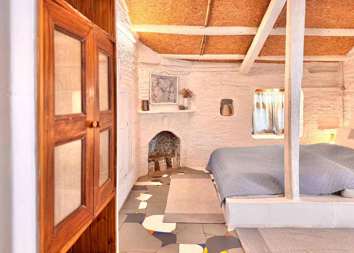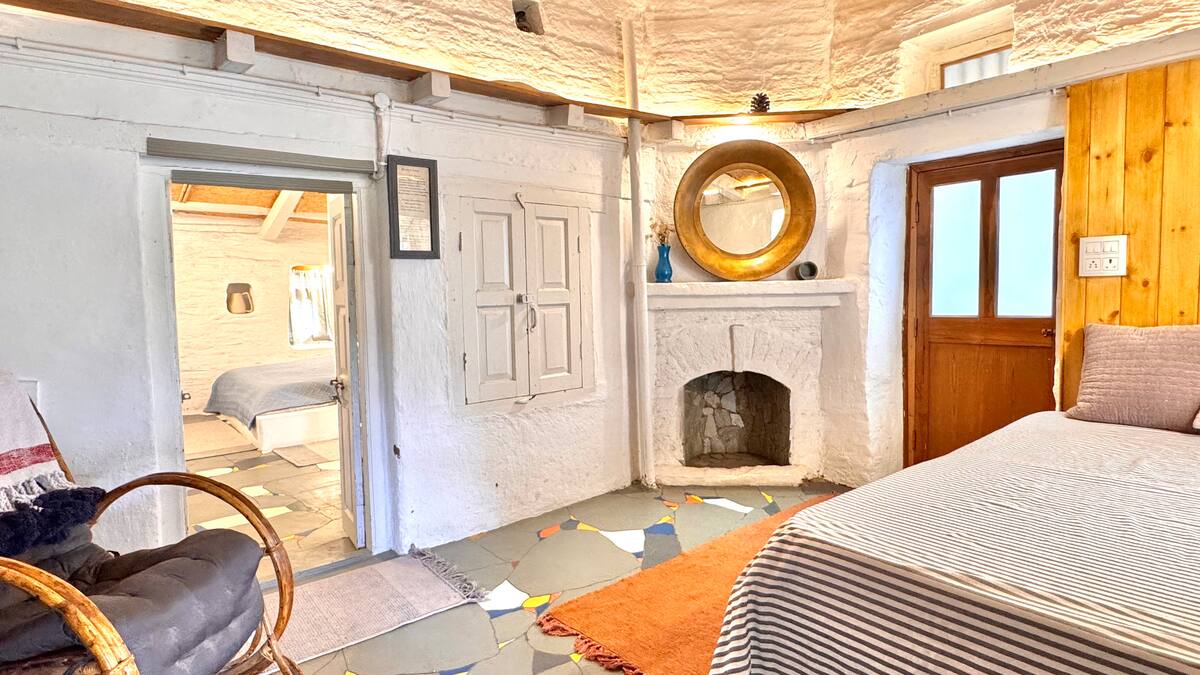 Sabi is restored stone suite with a bedroom, study and sleeps 3 comfortably. Hand-painted floors and hillside views make it a serene getaway.