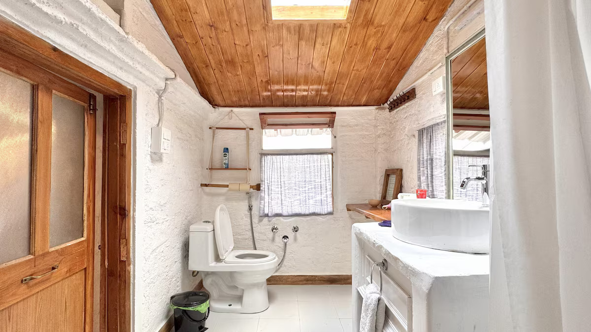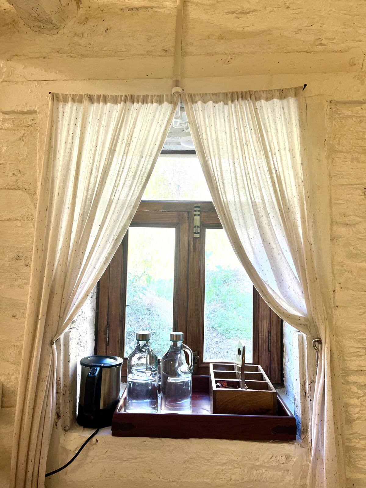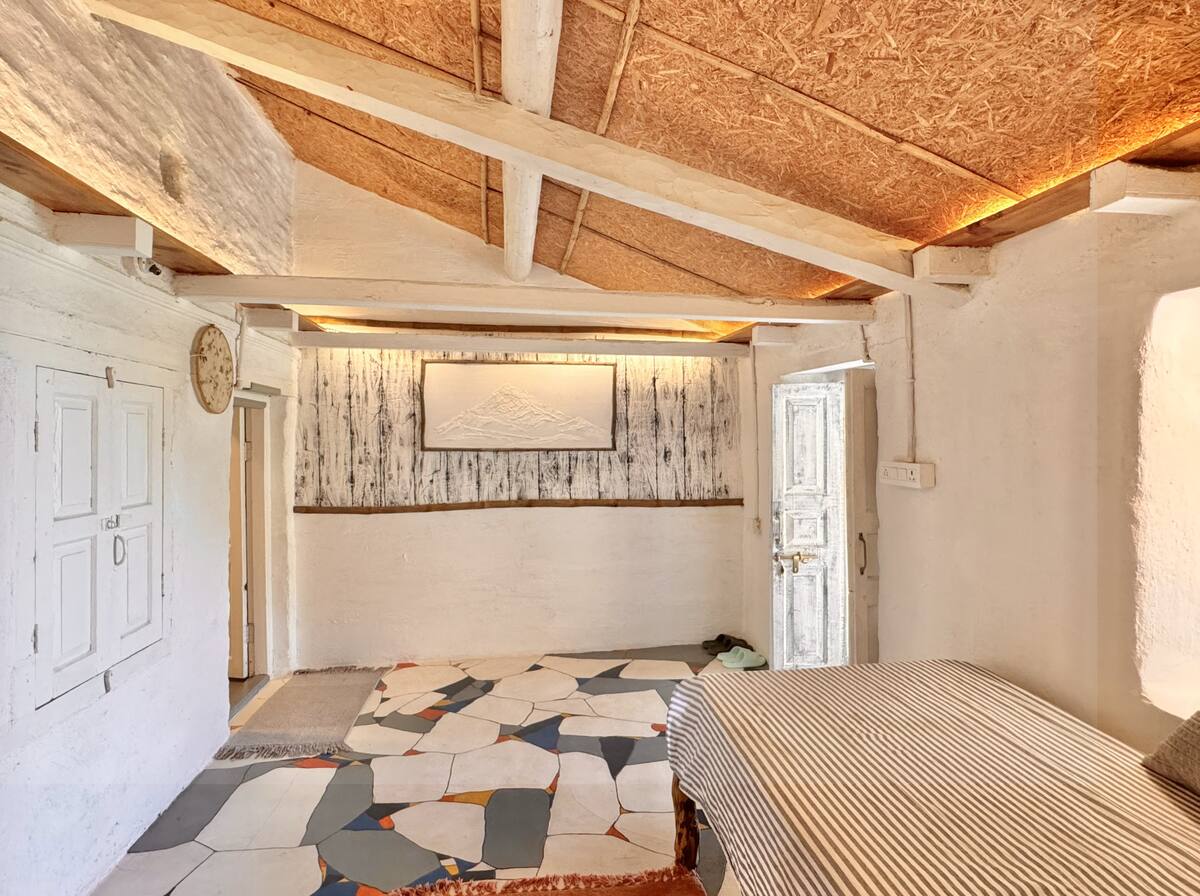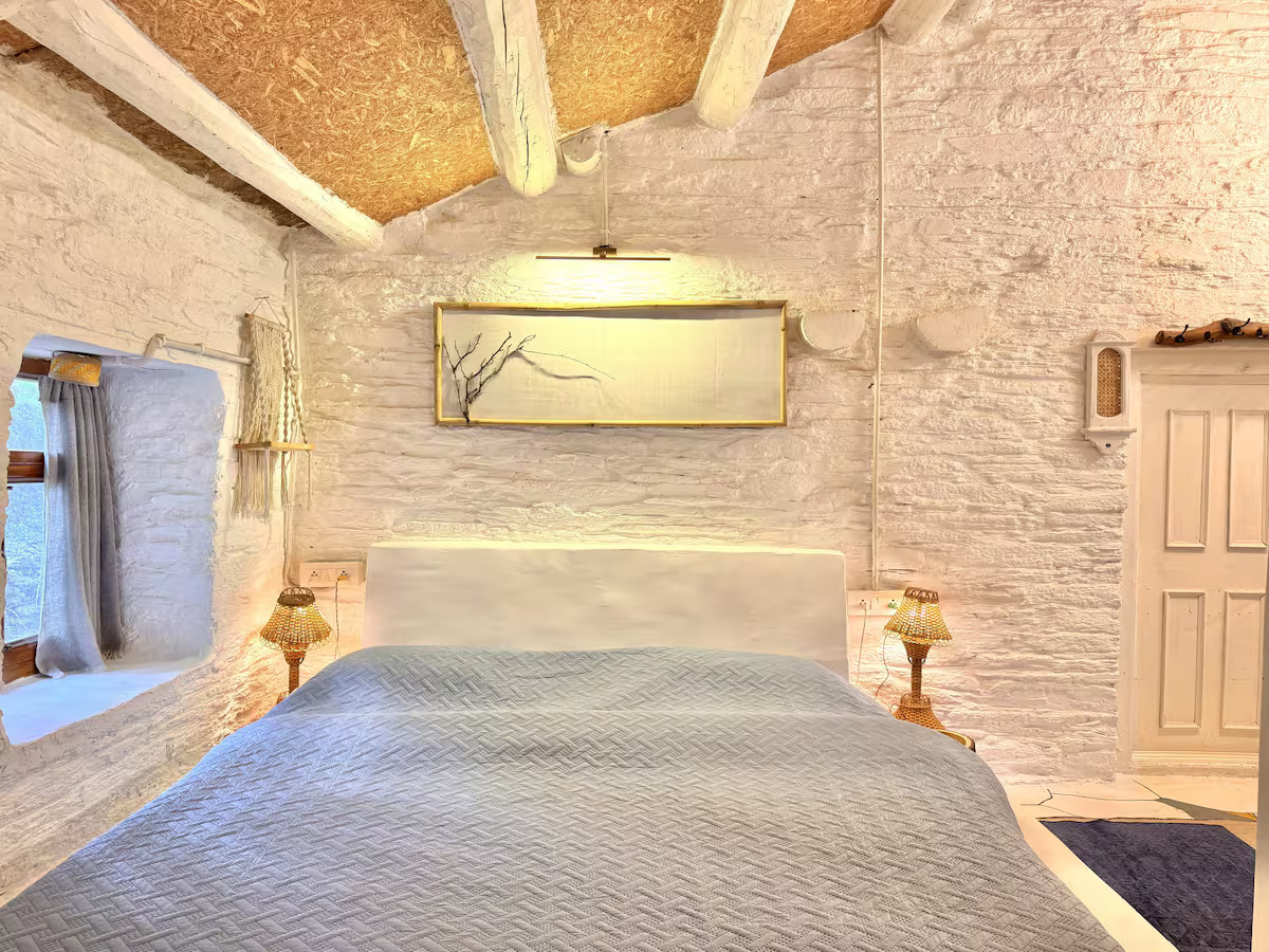 Wabi is a restored heritage stone suite with a bedroom and adjoining study, featuring hand-painted floors and cozy charm, it comfortably sleeps 3 guests in a serene hillside setting.
