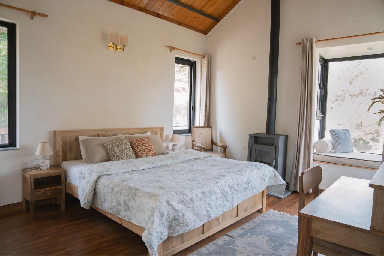 This pet-friendly accommodation in Uttarakhand offers three cozy guest rooms—two on the ground floor and one upstairs—alongside a welcoming lounge, an open kitchen, and a dining area perfect for shared meals and heartwarming conversations. Dedicated and trained full-time chefs, ensure you have a relaxing luxe stay where every meal feels homemade and comforting.