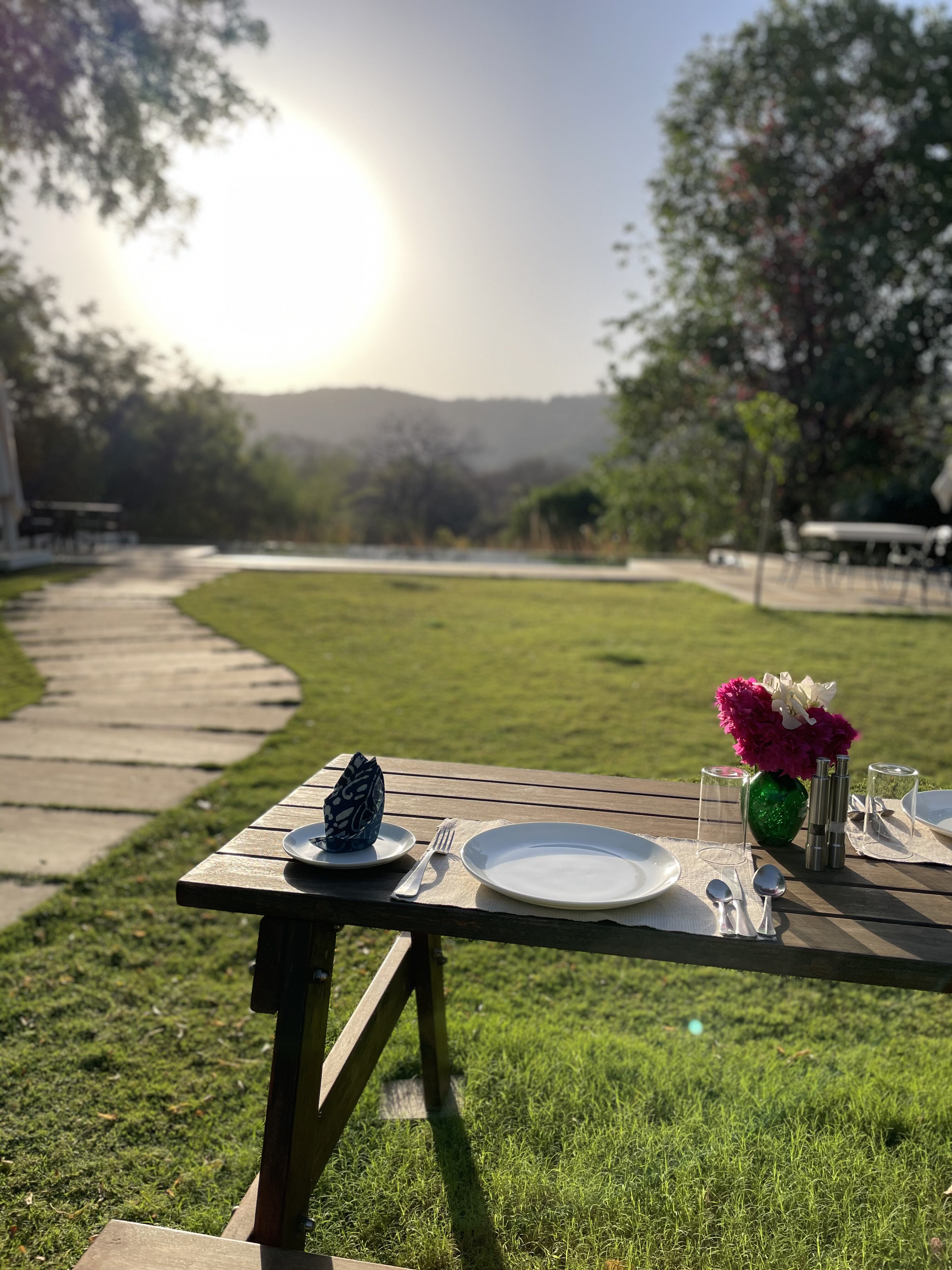 At Jaadooghar Courtyard House’s Café, guests can enjoy a thoughtfully curated menu blending Indian, Italian, Local, Asian, and International flavors. With vegetarian, vegan, and dietary-friendly options, each meal is freshly prepared and served with care. Lunch and dinner are available at ₹1500 per meal. A selection of wines and beers is also available at an additional cost.