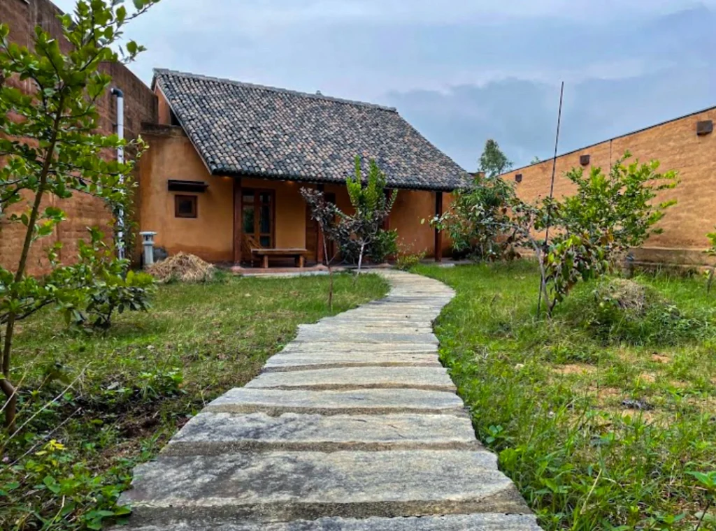 Inside, every corner radiates warmth. The mud architecture carries an earthy charm, while the interiors are thoughtfully designed with elegant, minimal furnishings. The four cozy bedrooms with premium mattresses and open-roof bathrooms with natural lighting, offer comfort without losing touch with the rustic setting. Private sit-out spaces and large windows keep you immersed in nature even while indoors.