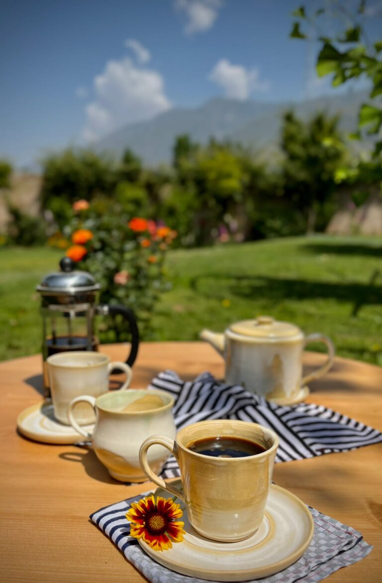 Sip kahwah, that golden, faintly spiced Kashmiri tea, whenever you please — our version of hospitality in a cup. Walk our gardens. Let the quiet wash over you. And when you leave, carry a little of Srinagar with you.